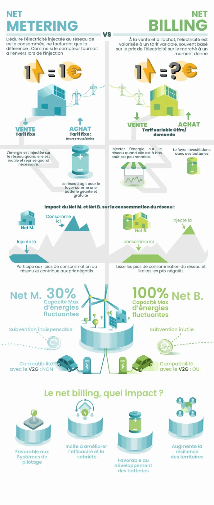 Ma mission ? Transformer une présentation d’une heure en deux infographies claires : comparer les systèmes énergétiques français et californien, et expliquer la différence entre net metering et net billing !