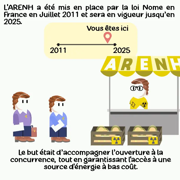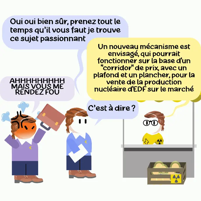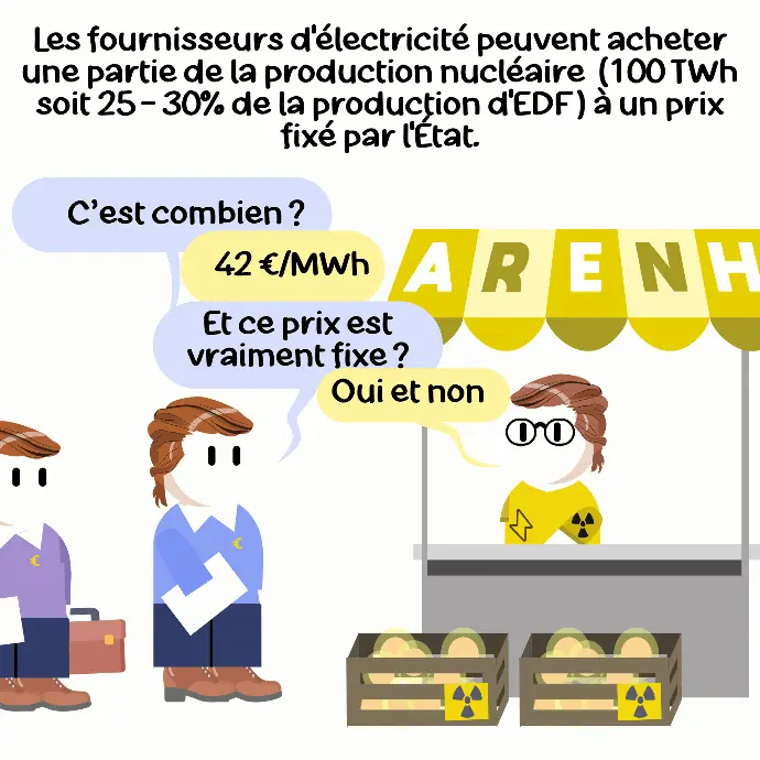 Cette BD explique le fonctionnement de l’ARENH (Accès Régulé à l’Électricité Nucléaire Historique), ce mécanisme qui permet aux fournisseurs alternatifs d’acheter de l’électricité nucléaire d’EDF à prix régulé.